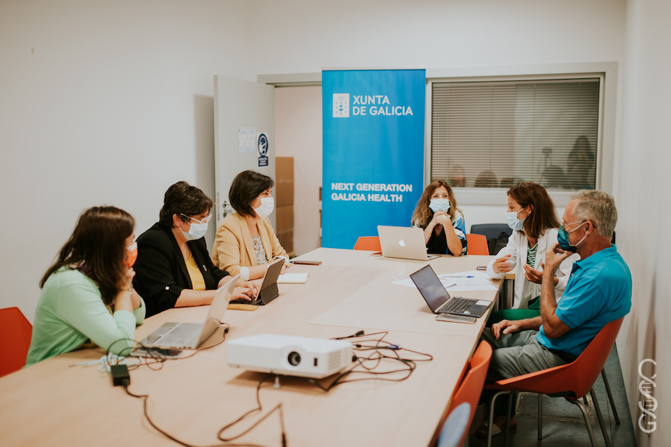 El equipo CSG liderado por Gisela Garcia-Alvarez, gerente del CSG, acompañada por Raquel Morano Vázquez, en representación de la OT NEXT GEN, y Maria Belen Oller Fernandez, directora de comunicación del CSG, ha visitado a la Fundación Pública Galega de Medicina Xenómica durante el sexto día de visitas.