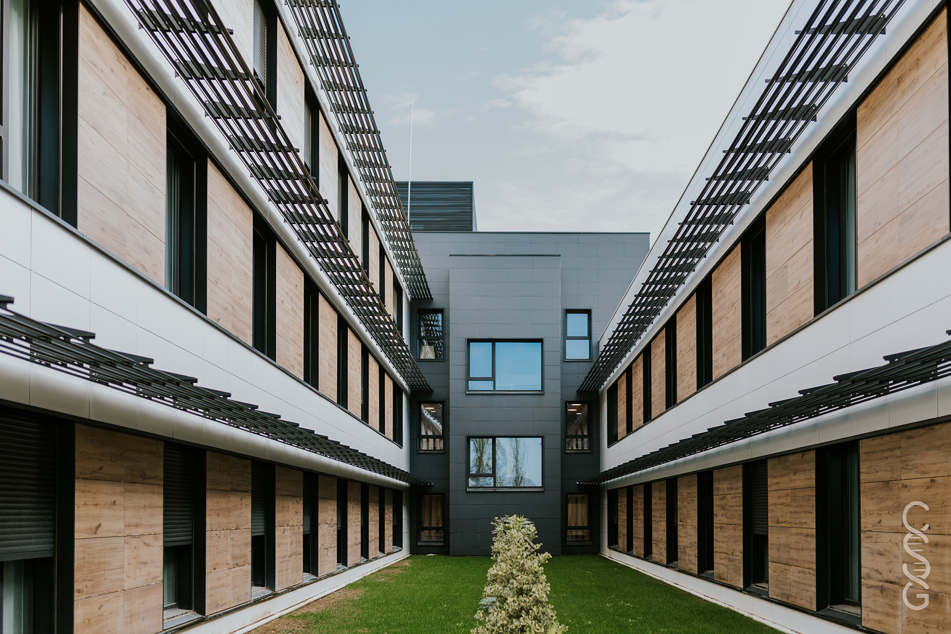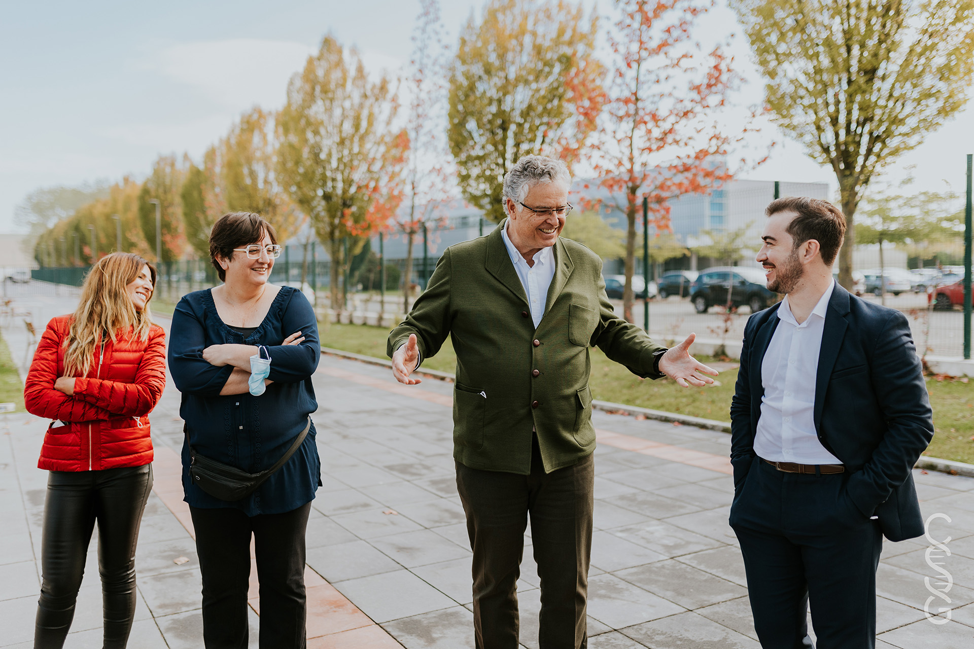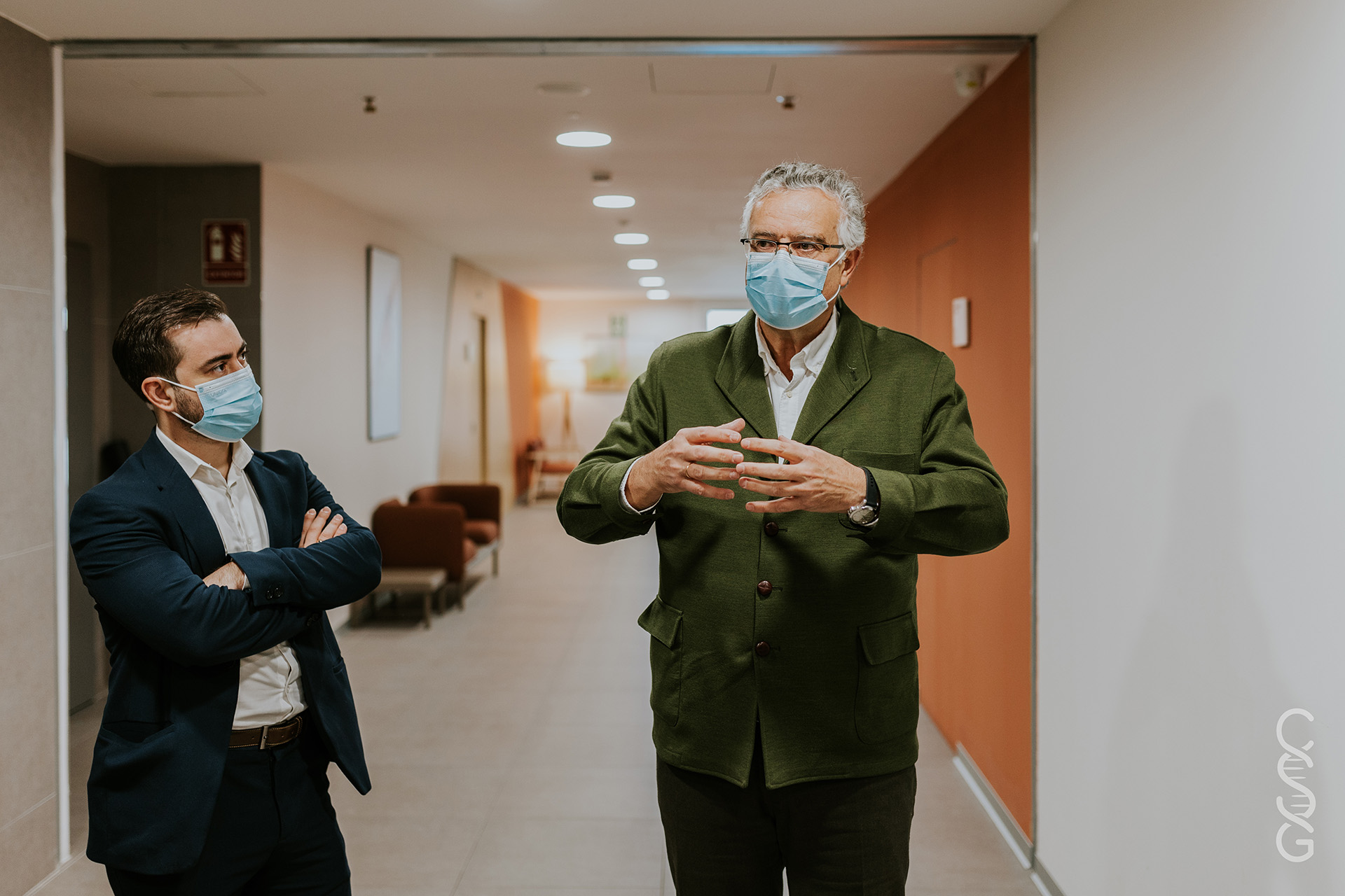 Rafael Sánchez-Ostiz, CEO de Idea, José Mari Iribarren Gasca, Director del Centro Sociosanitario BIDEALDE y Dra. Pilar Suárez López, Directora de Innovación en IDEA, nos guiaron por las instalaciones explicándonos como está organizado el centro, con unidades de convivencia centradas en que los residentes se sientan como en su hogar, y con temática del Camino de Santiago.